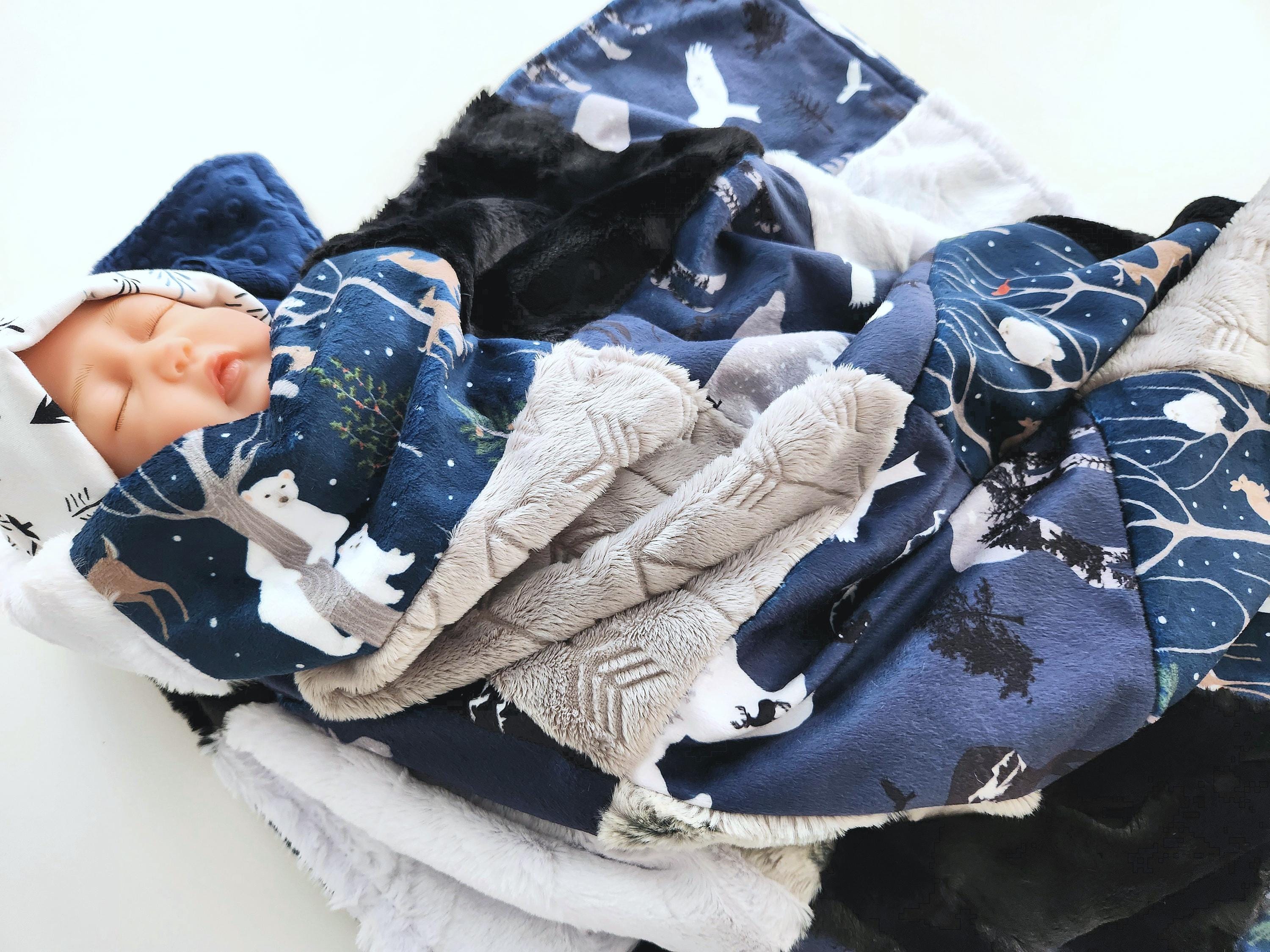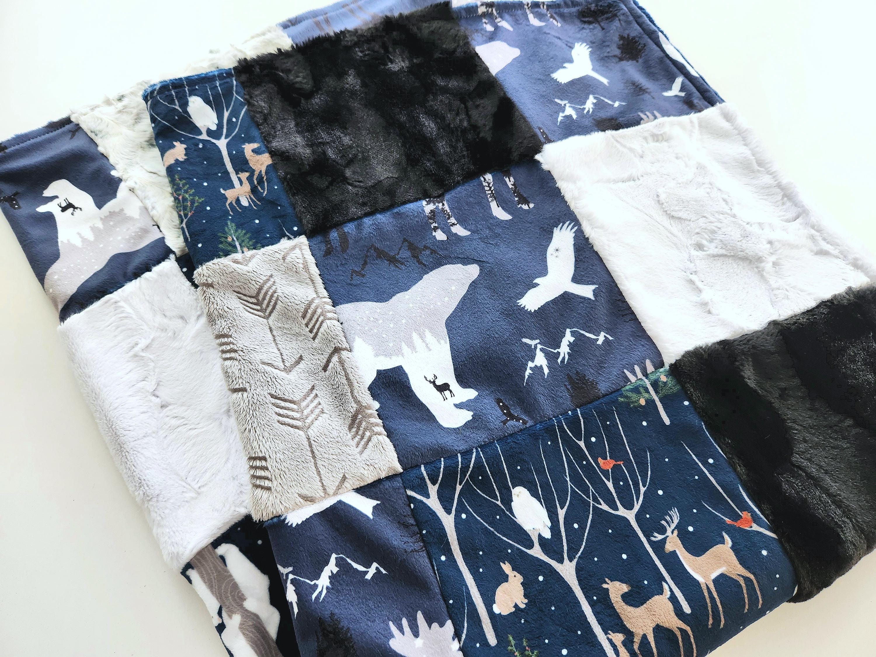 This blanket is made with two sides of luxurious designer minky. A totally irresistible baby or toddler blanket! This will be baby's favorite from day 1. Perfect for in the nursery, around the house, or on the go! Made with love in a clean, smoke free environment.