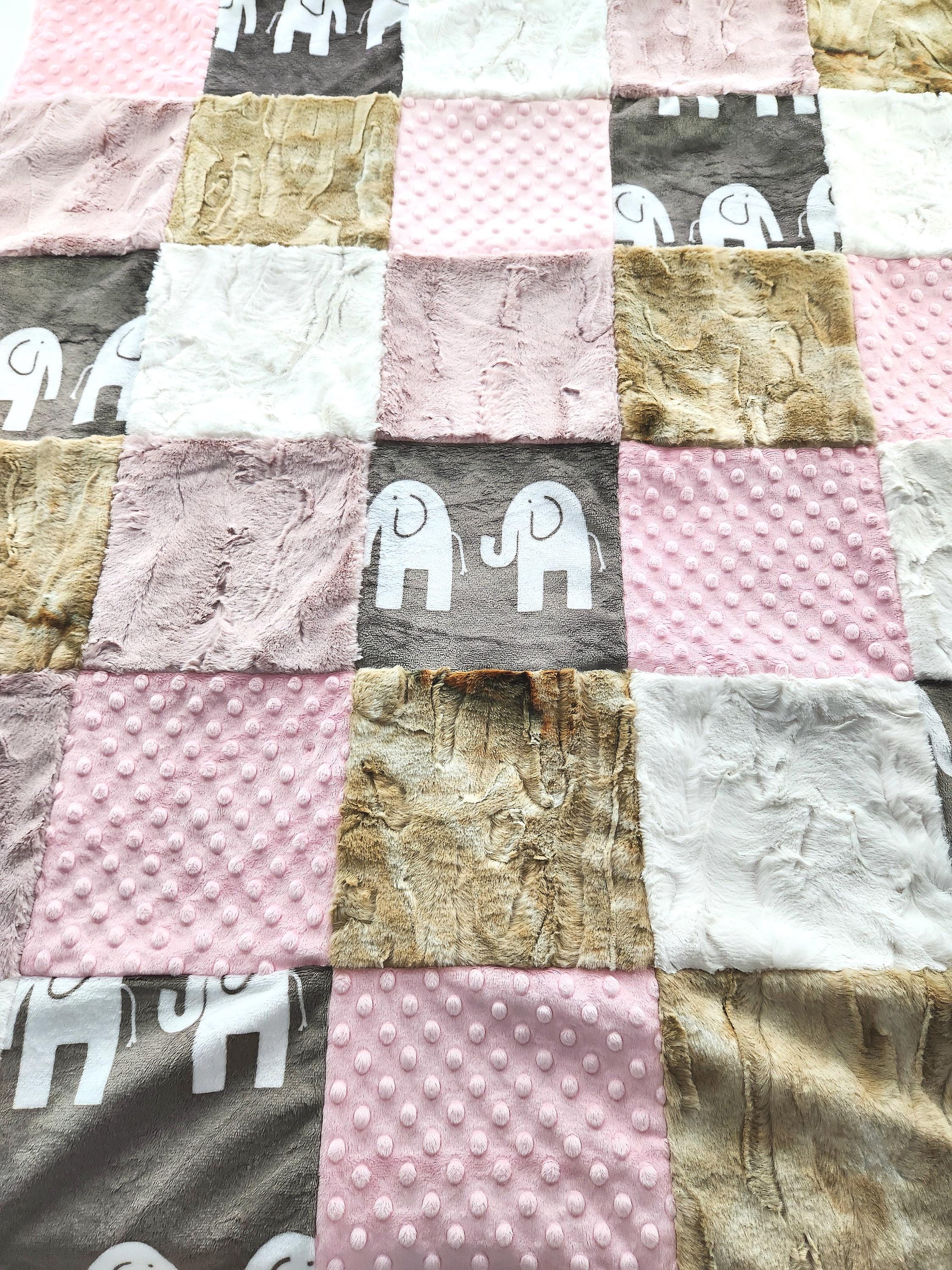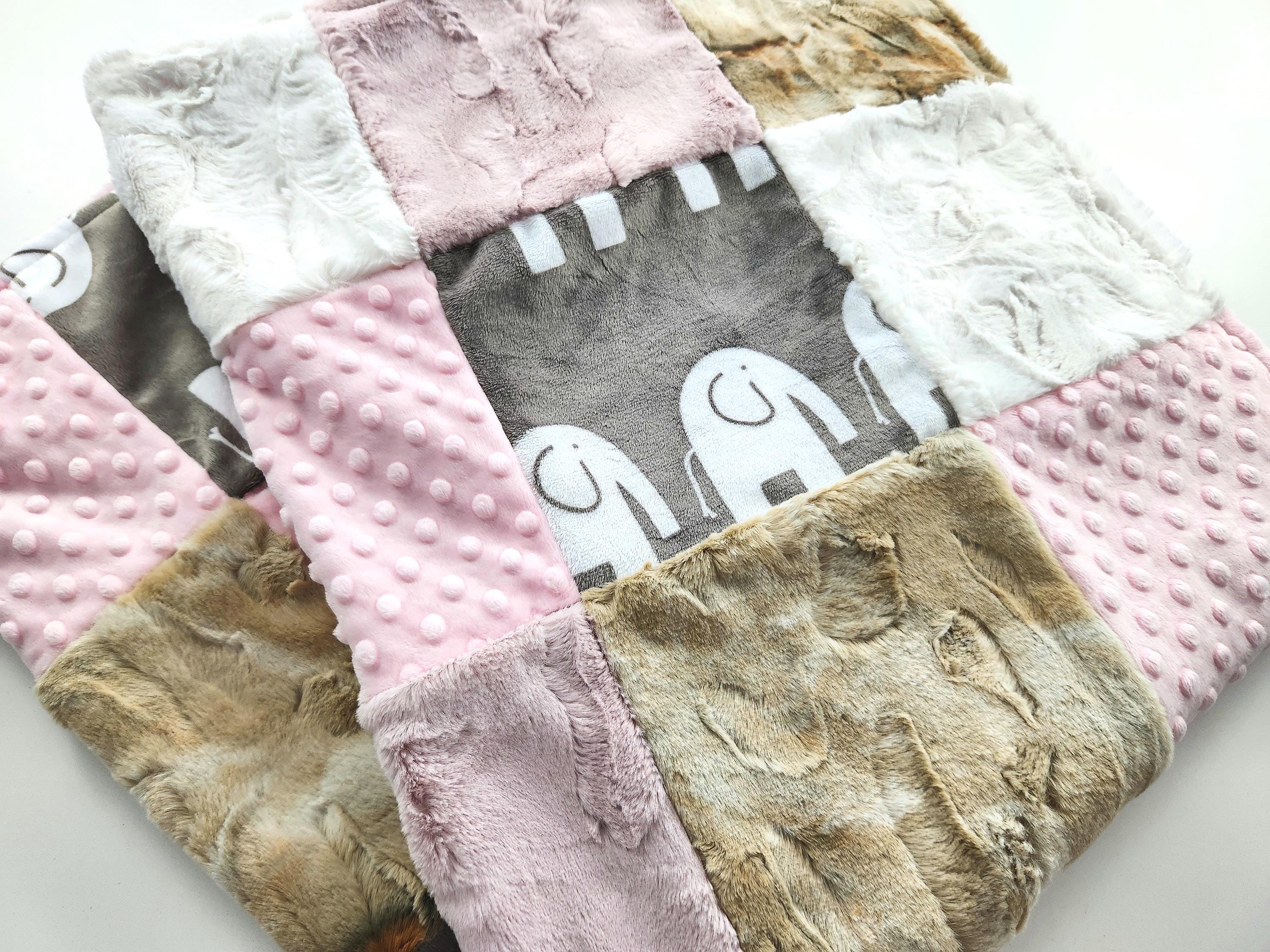 Elephant Patchwork Minky Baby Blanket - 35"X41"