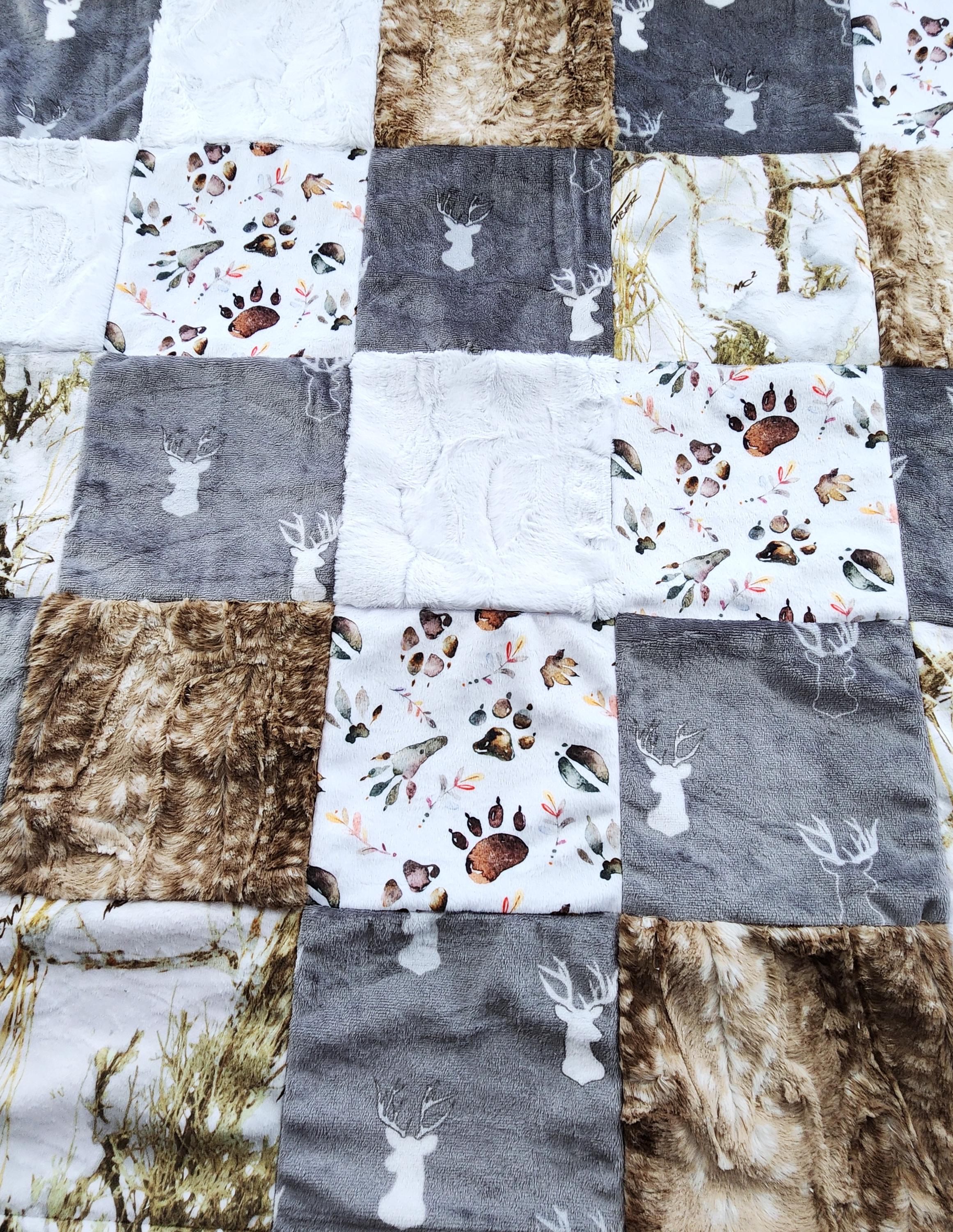 This blanket is made with two sides of luxurious designer minky. A totally irresistible baby or toddler blanket! This will be baby's favorite from day 1. Perfect for in the nursery, around the house, or on the go! Made with love in a clean, smoke free environment.