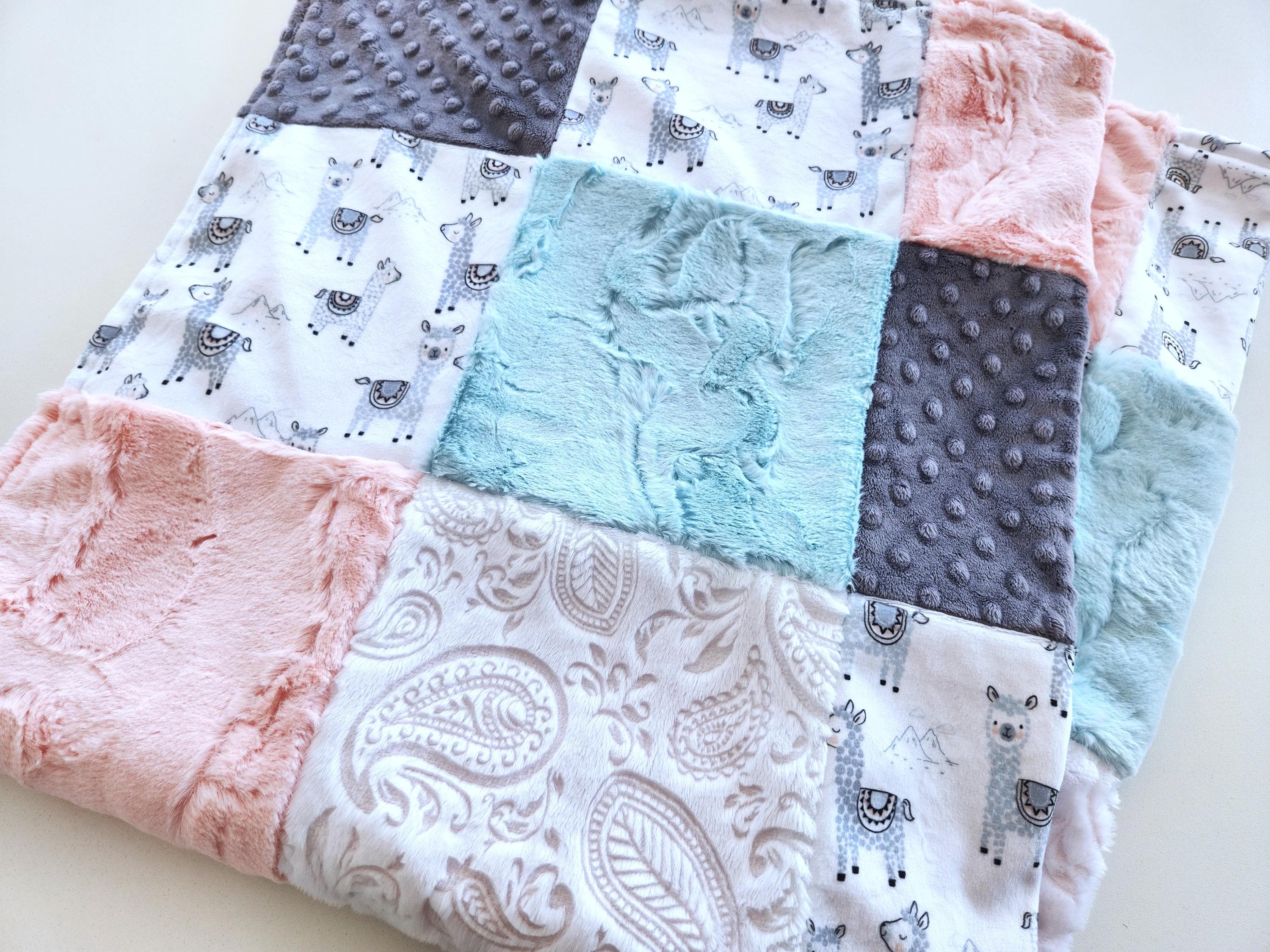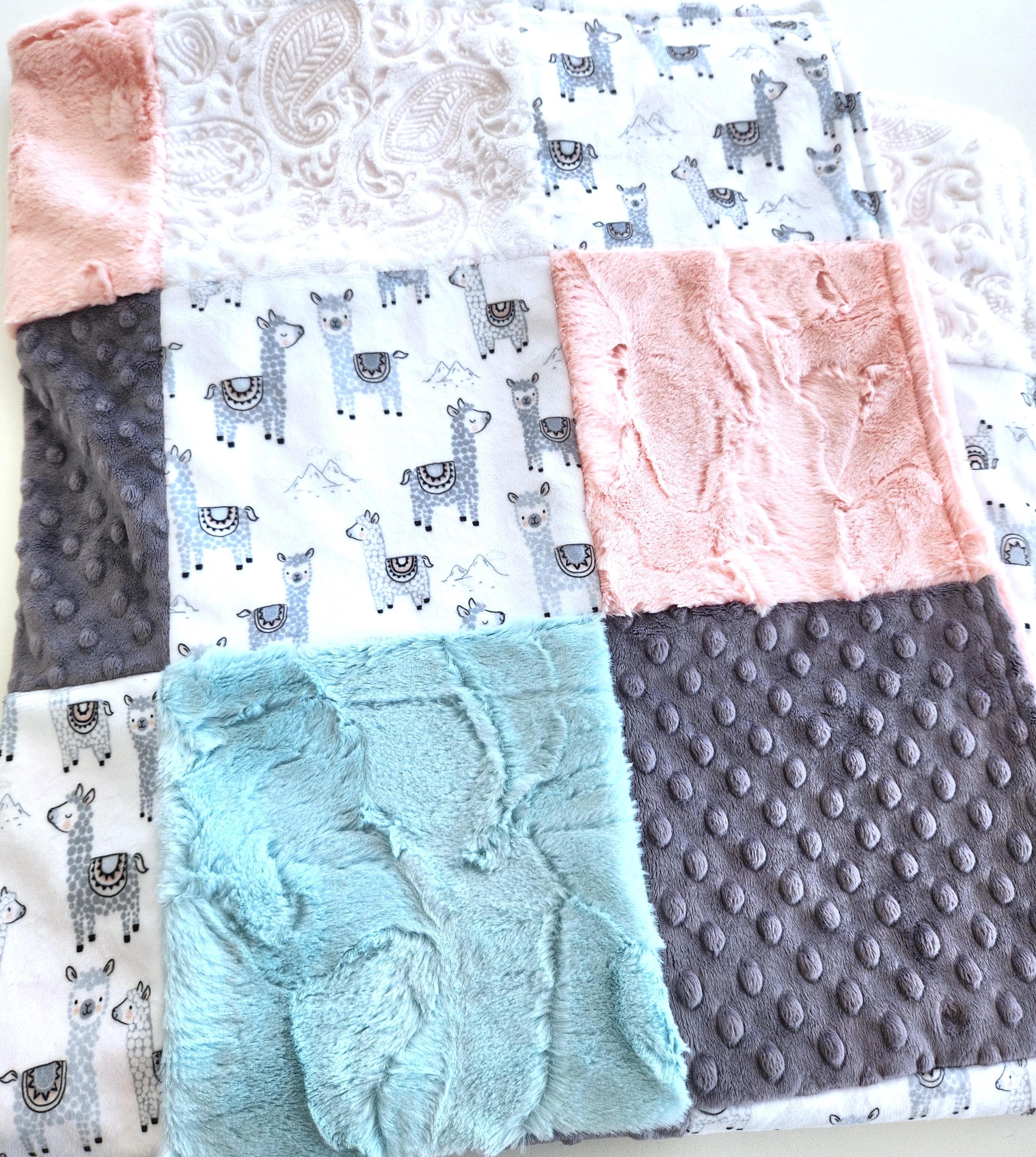 Alpaca Minky Patchwork Baby/Toddler Blanket - 35X41 Soft Plush