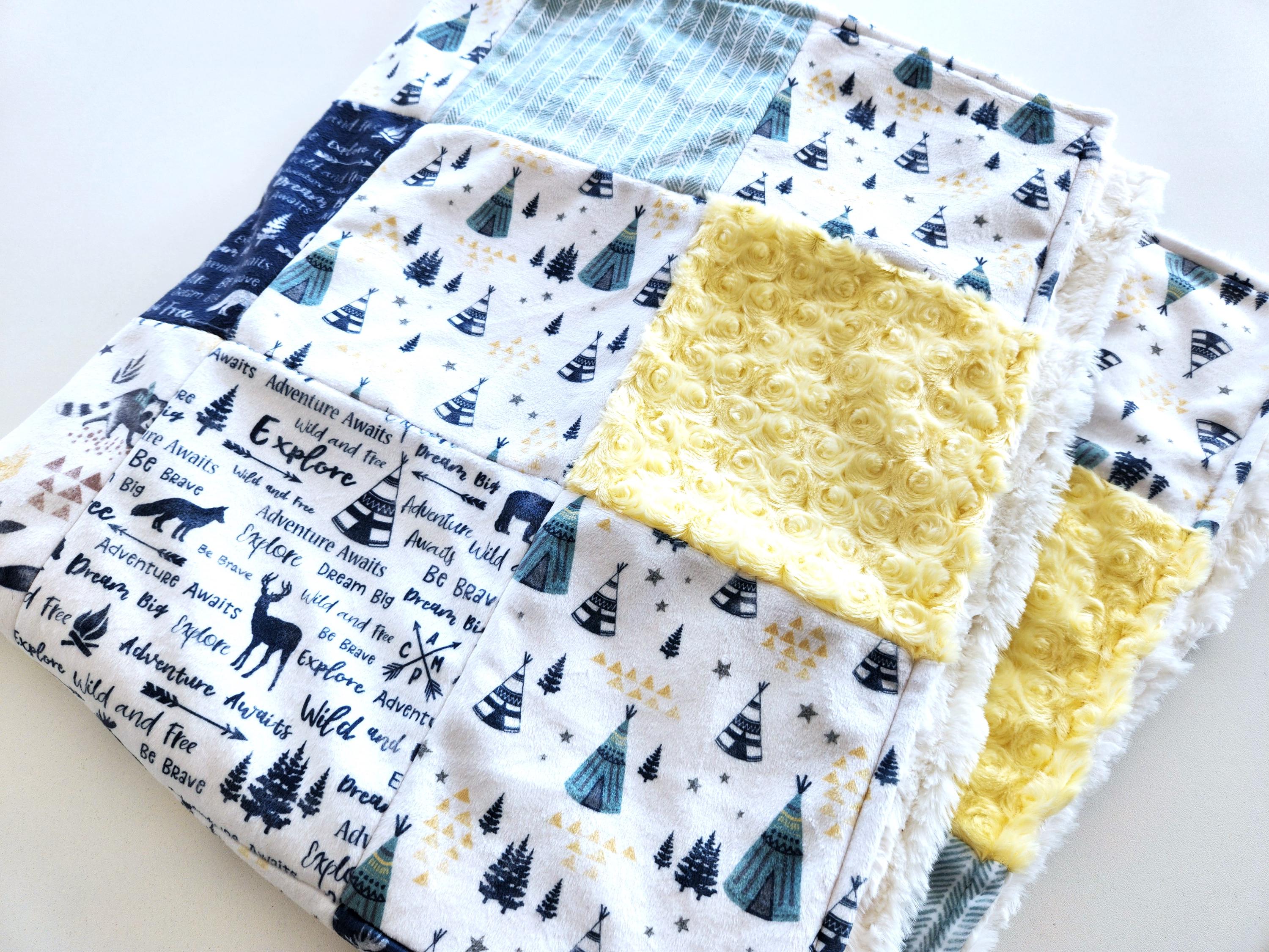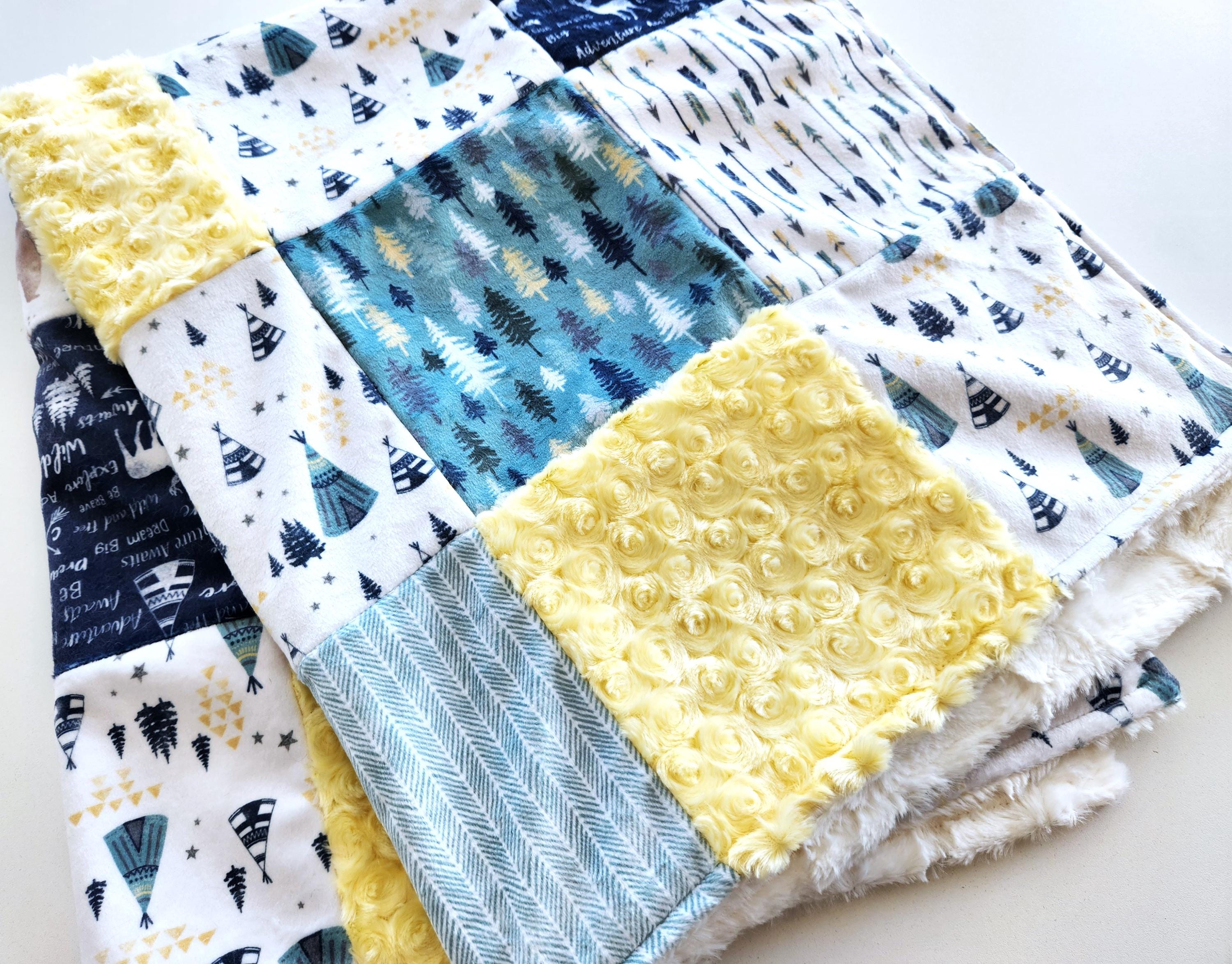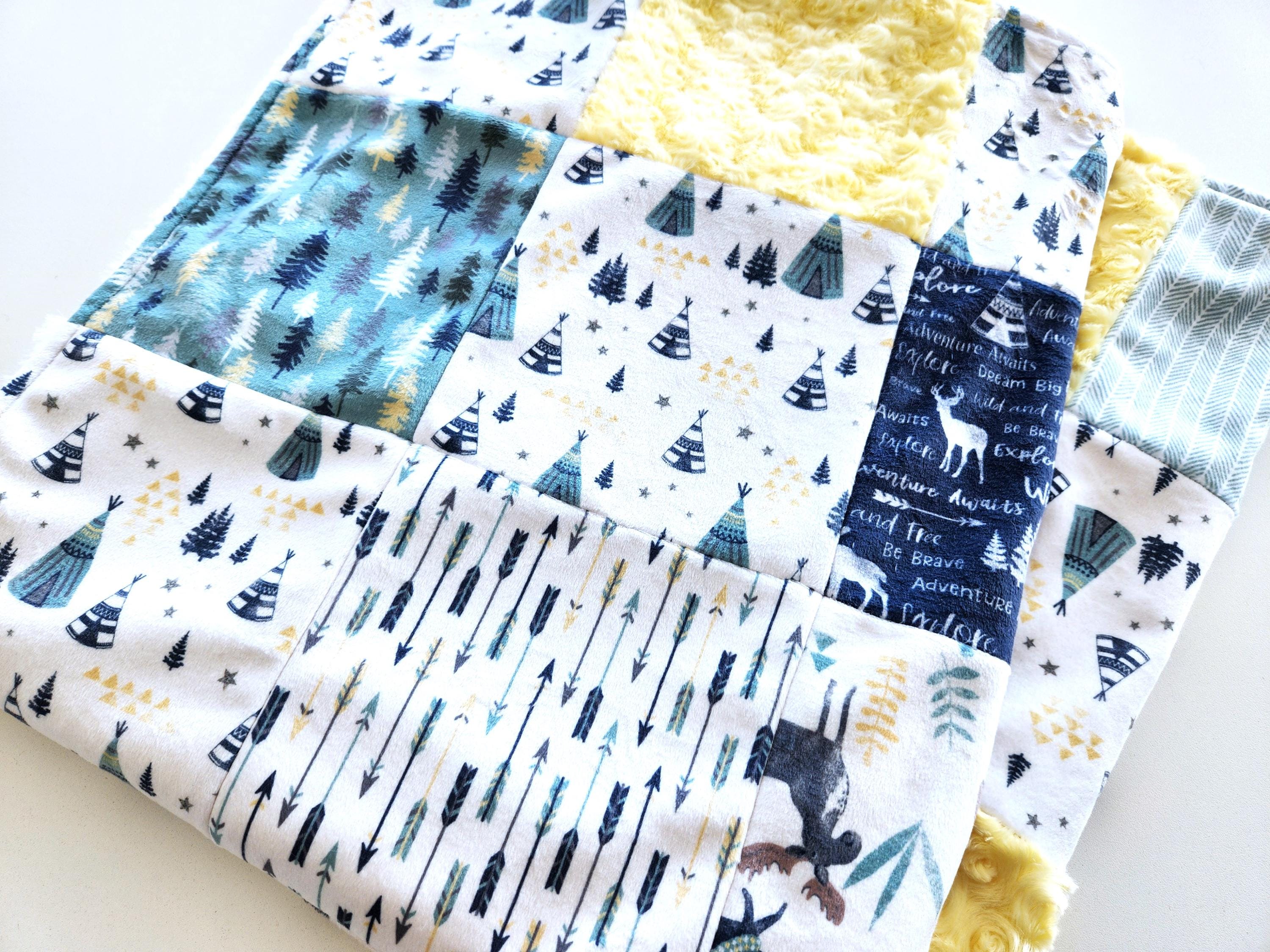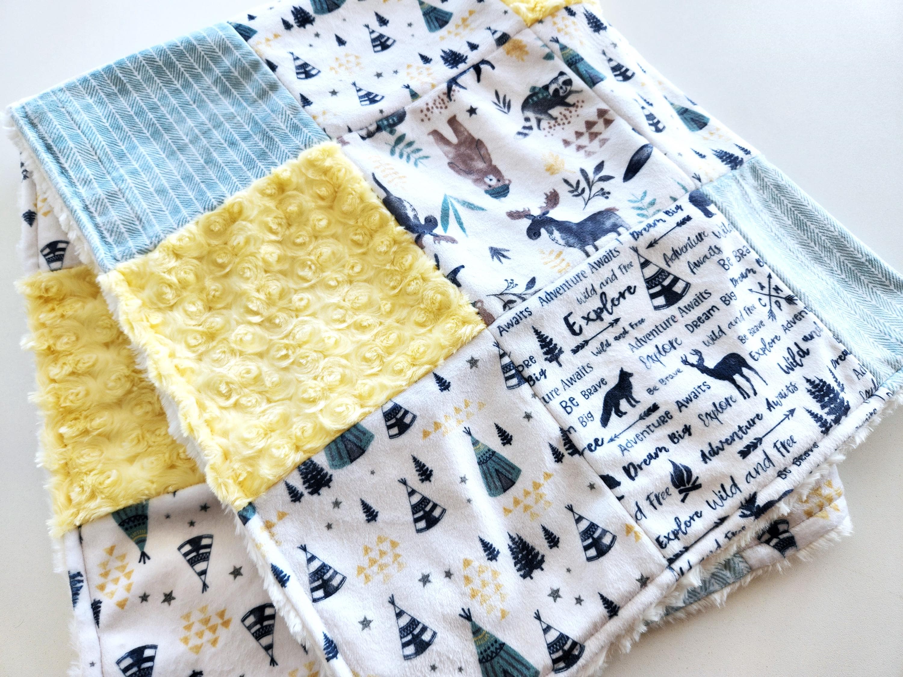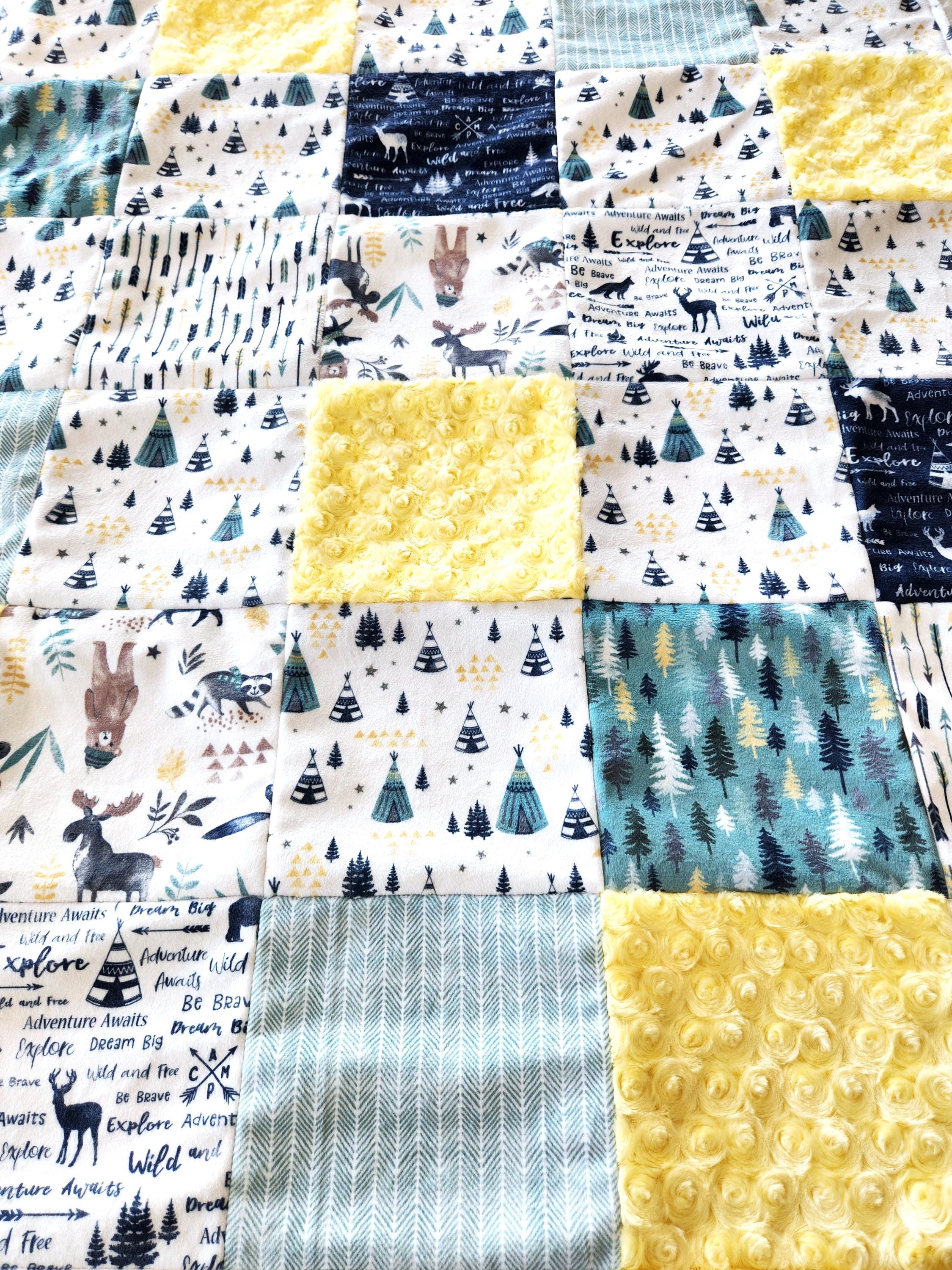 Wild Adventure Minky Patchwork Baby/Toddler Blanket - 35"X41" - Soft Plush