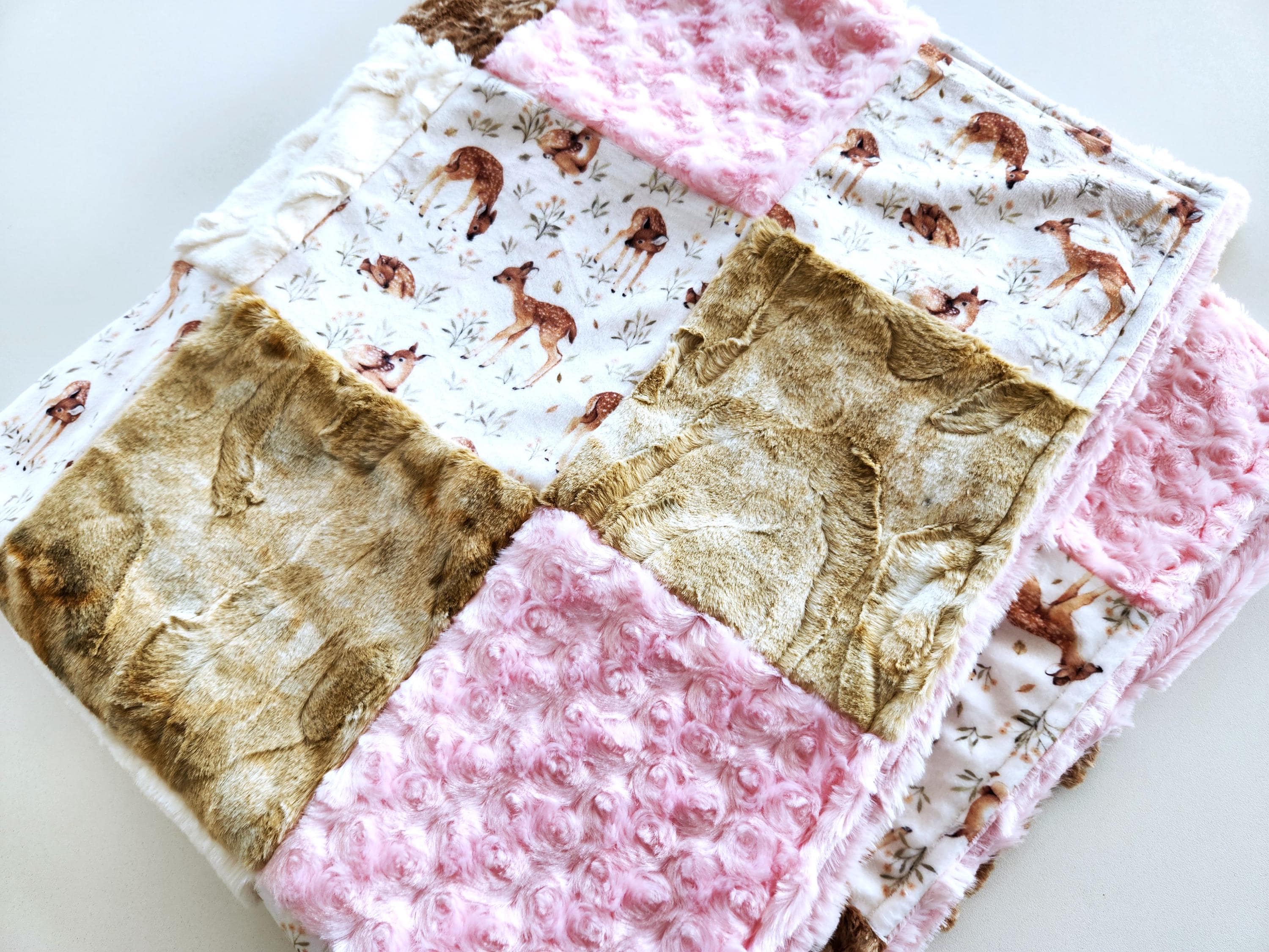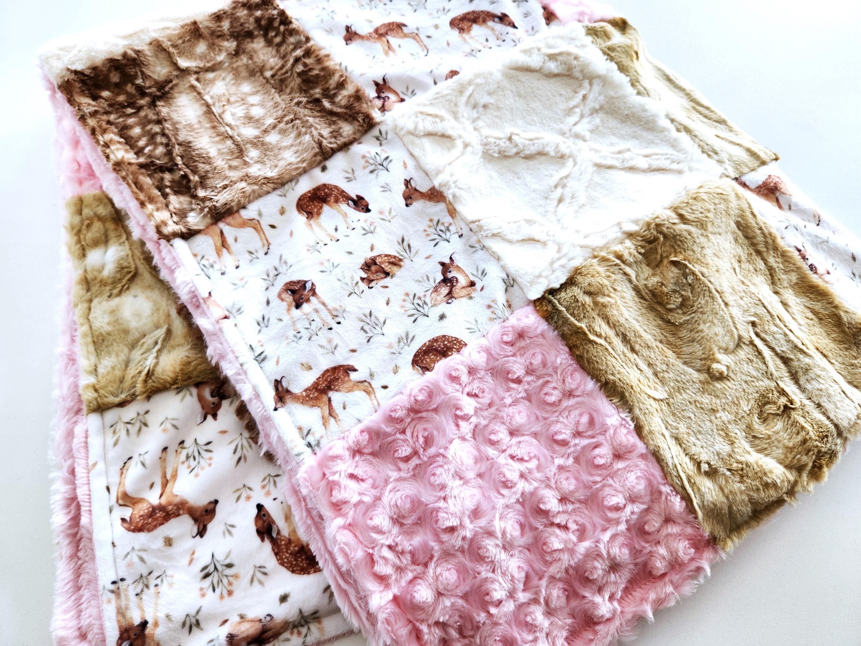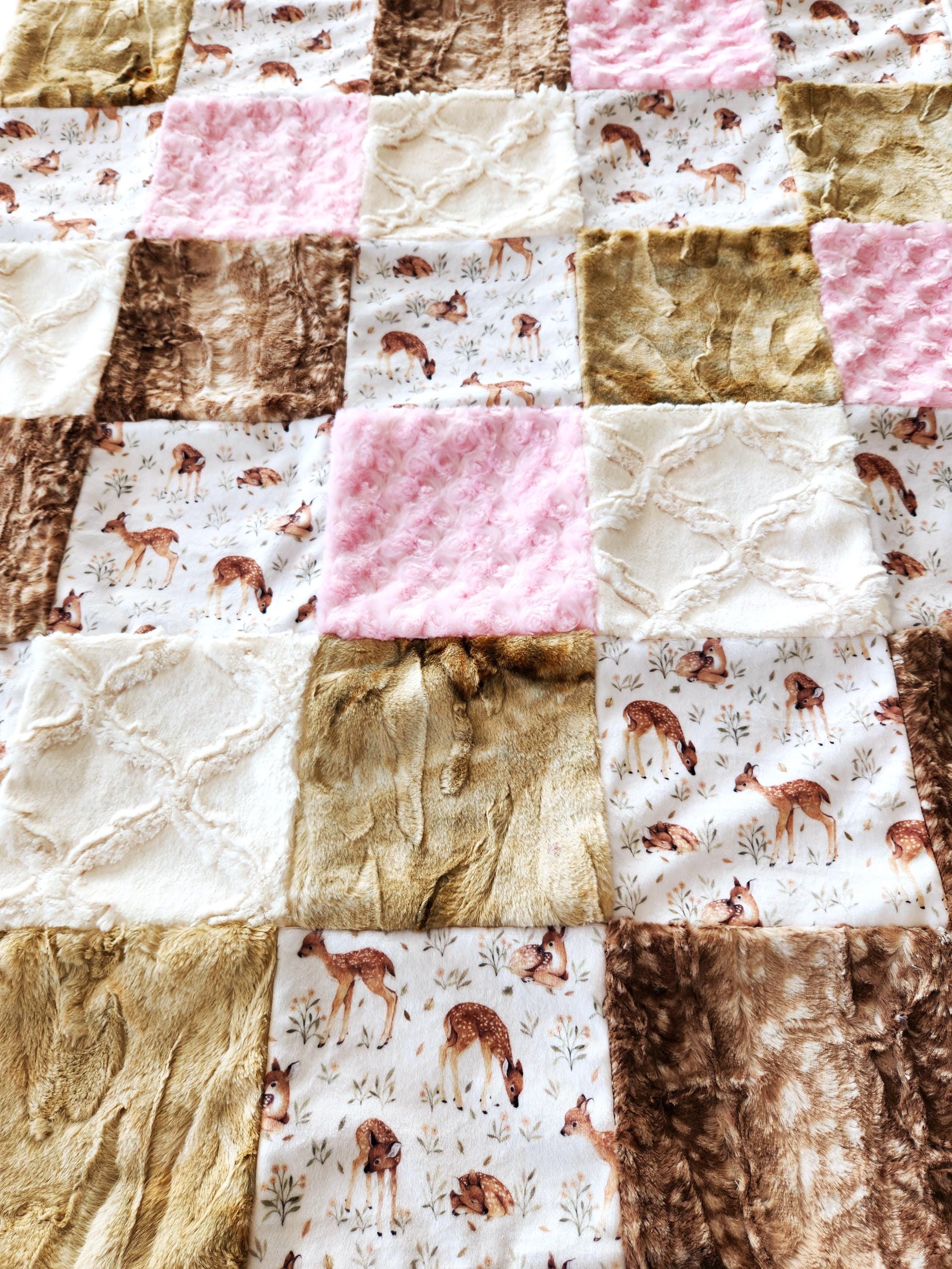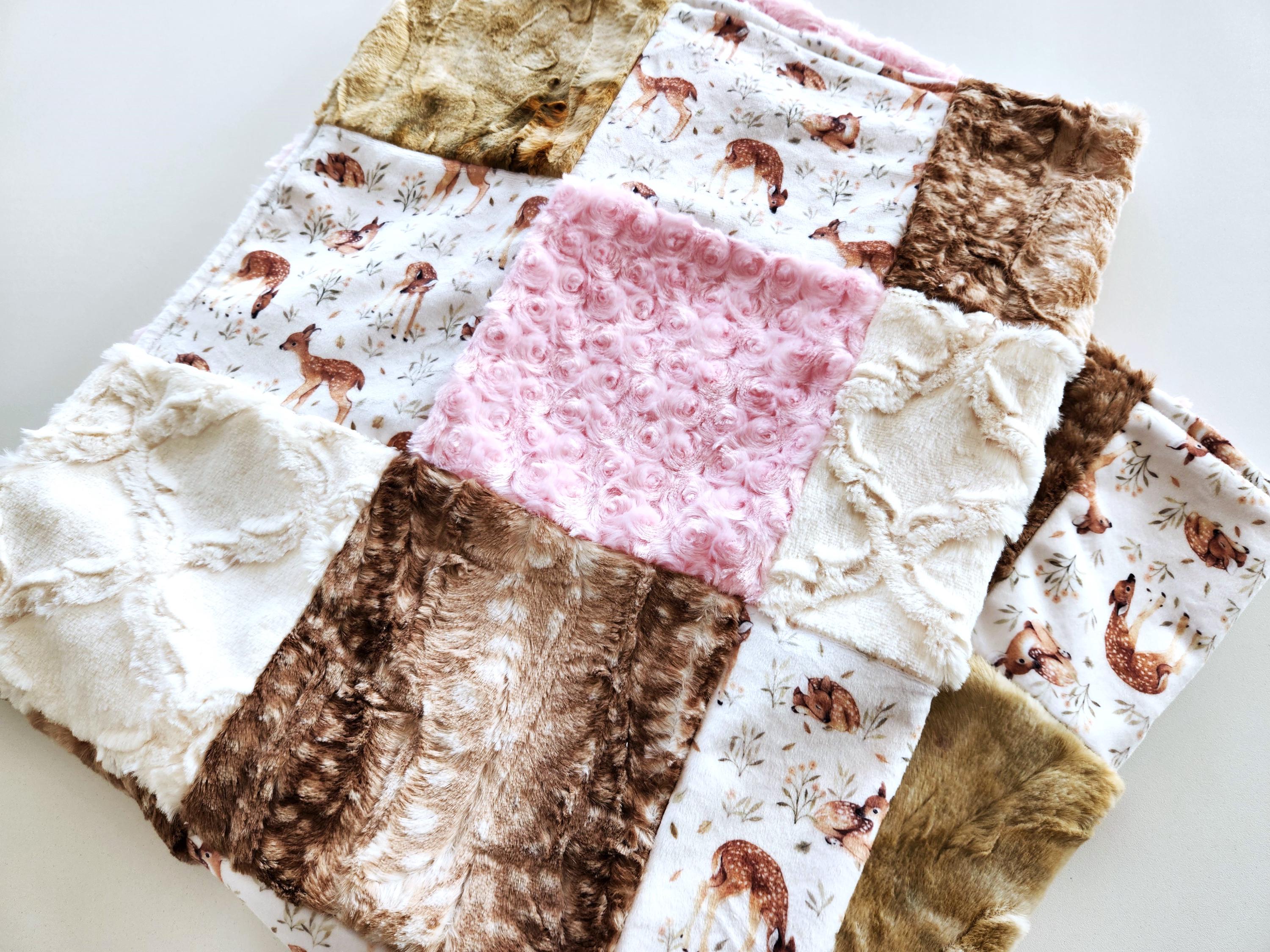 Fawn Minky Patchwork Baby/Toddler Blanket - 35"X41" - Soft Plush